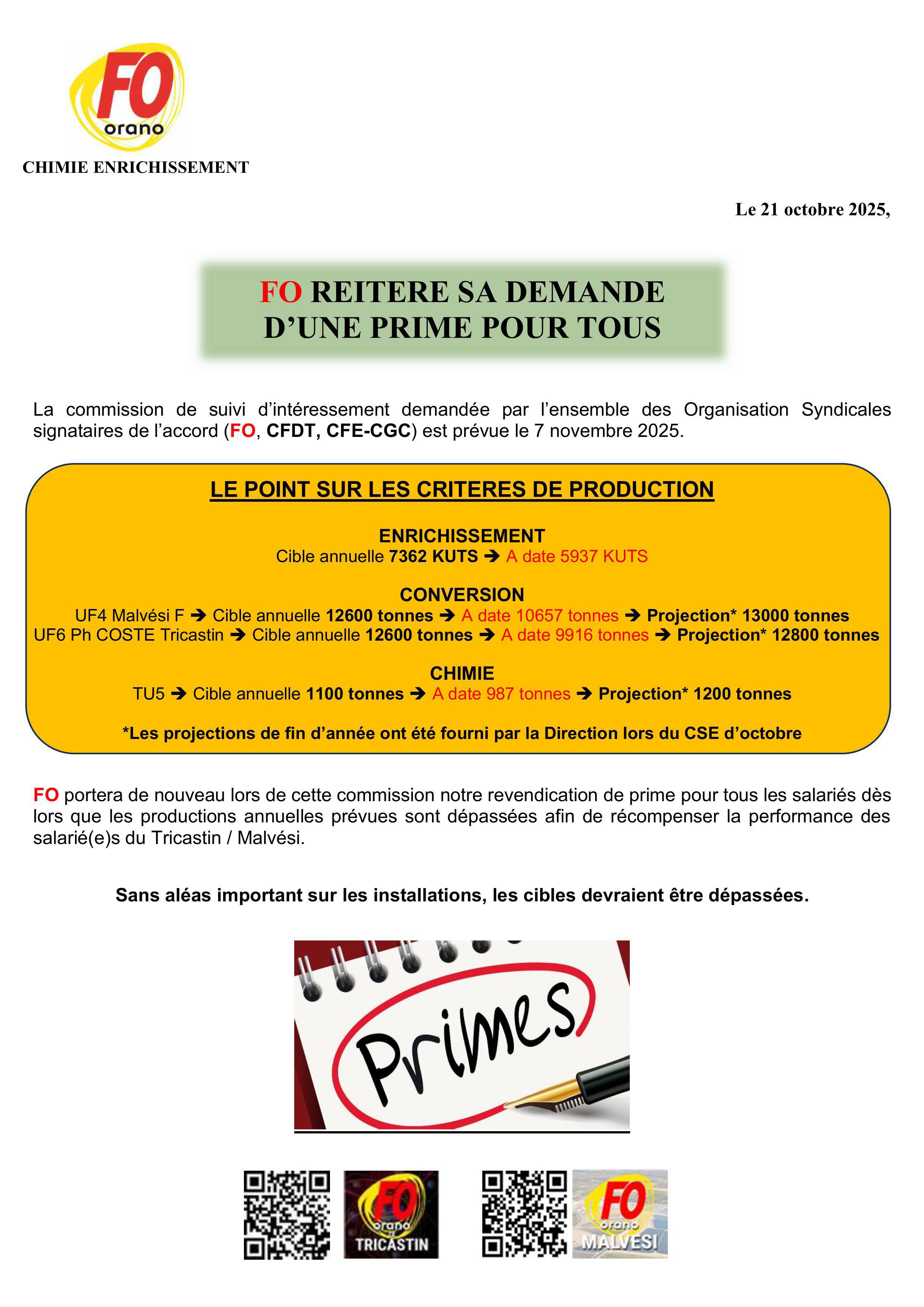 Commission intéressement - FO demande une prime pour tous