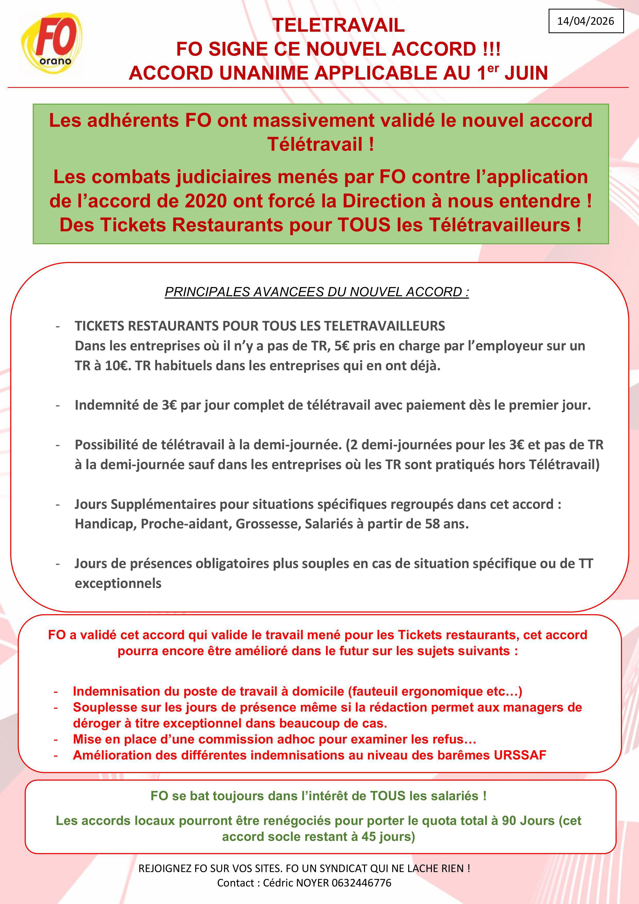 Le nouvel accord a intégré le combat mené par FO contre l’accord de 2020 sur les tickets restaurants, FO signe l’accord de 2026 qui est donc unanime.