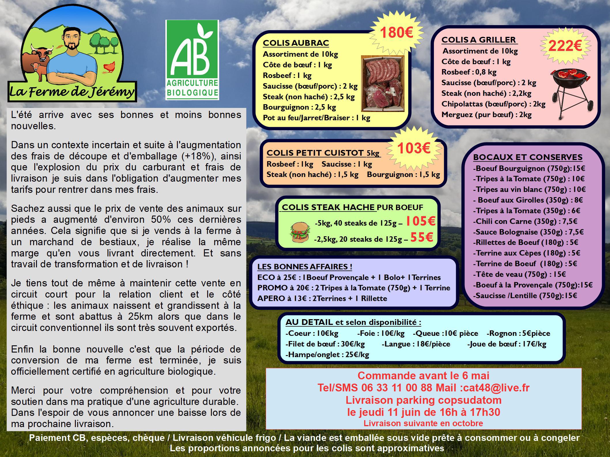 Livraison sur le parking du local copsudatom le jeudi 11 juin 2026 de 16h à 17h30.